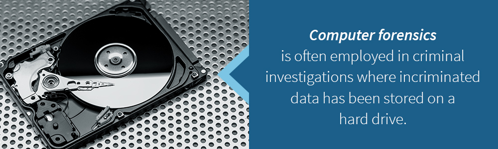 Computer forensics is often employed in criminal investigations where incriminated data has been stored on — and in some cases deleted from — a hard drive. In cases like these, a CFE might be subpoenaed to testify in a court of law. The evidence will be cross-examined and the CFE will have to defend or elaborate on his or her findings.
